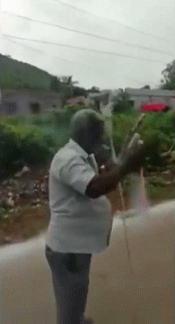 手拿烟花点火的大爷